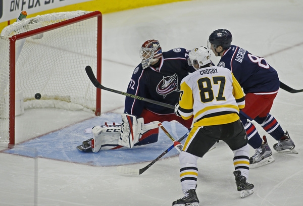 Sidney Crosby gave the Penguins their only lead, 1-0, at 2:39 of the opening period, when he swatted his own rebound past Blue Jackets goalie Sergei Bobrovsky for his league-leading 23rd goal of the season.
