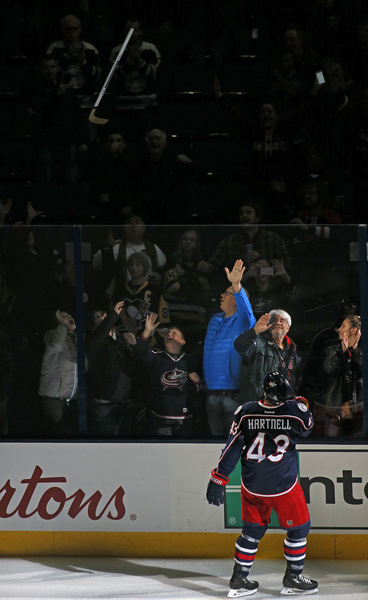 Columbus made it 3-1 at 12:20, when Hartnell outraced Penguins defenseman Derrick Pouliot to a puck in the left circle, then went to the net and tossed a backhander by Murray.