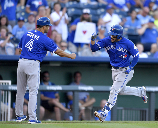 Escobar scored a run in the first after reaching on Barney's first error, and after the Blue Jays put two more on the board in the third, the Royals responded again two innings later. On a night in which his home country opened the 2016 Olympics in Rio, Orlando hit his third home run of the season just over the left centerfield fence. Four batters later, Lorenzo Cain tied the game on a triple to left center that scored Cheslor Cuthbert.