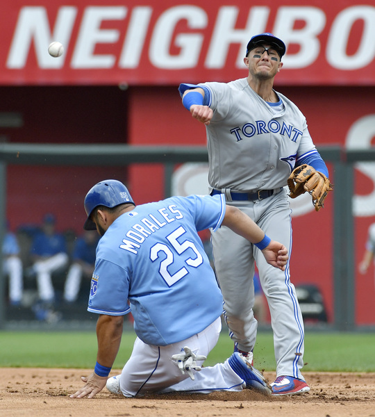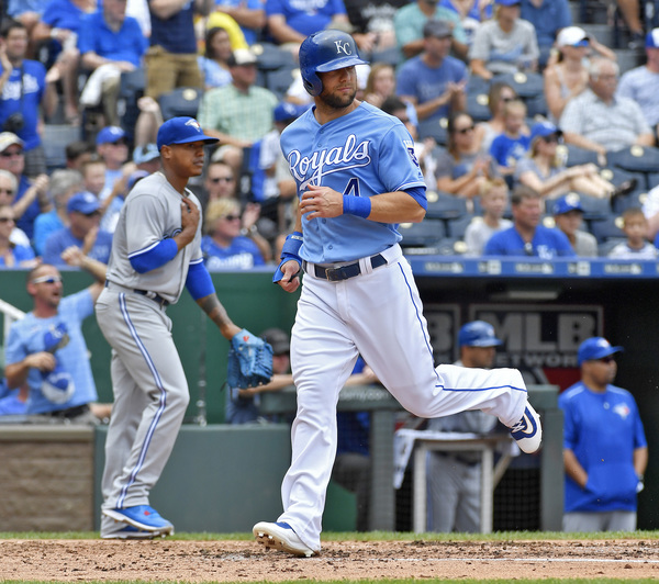 In the bottom of the ninth, Royals outfielder Paulo Orlando reached second base on a one-out throwing error from Toronto third baseman Darwin Barney. But he was caught attempting to steal third in the ensuing at-bat. Jarrod Dyson directed a base hit into left field a few pitches later before Alcides Escobar struck out for the final out.