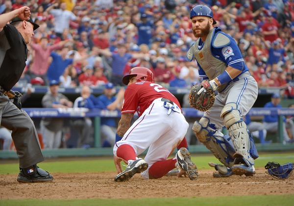 Jose Bautista knocked in Donaldson with a single, and Russell Martin walked to load the bases. Troy Tulowitzki cleared them with a triple to center field that Ian Desmond appeared to slow on as he reached the warning track.