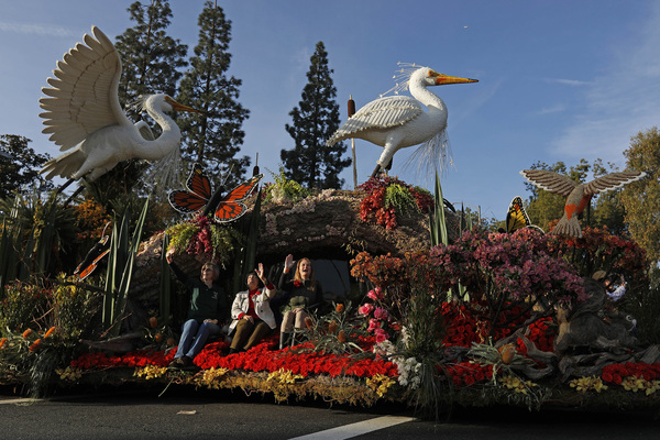 The sky was a picture-perfect blue, the sun shone bright, and the flower-covered floats delighted with a kaleidoscope of color as tens of thousands of people rang in the new year at the 129th Rose Parade in Pasadena.