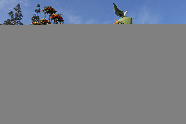 As Cal Poly University's float rounded the corner of Orange Grove and Colorado boulevards, the top _ a cat flying a small plane _ almost struck a stoplight.