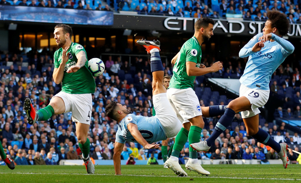 (Reuters) - A stunning Sergio Aguero goal capped Manchester City's 2-0 win over Brighton & Hove Albion as Pep Guardiola's champions served further notice that they will again be the side to beat in the Premier League this season.