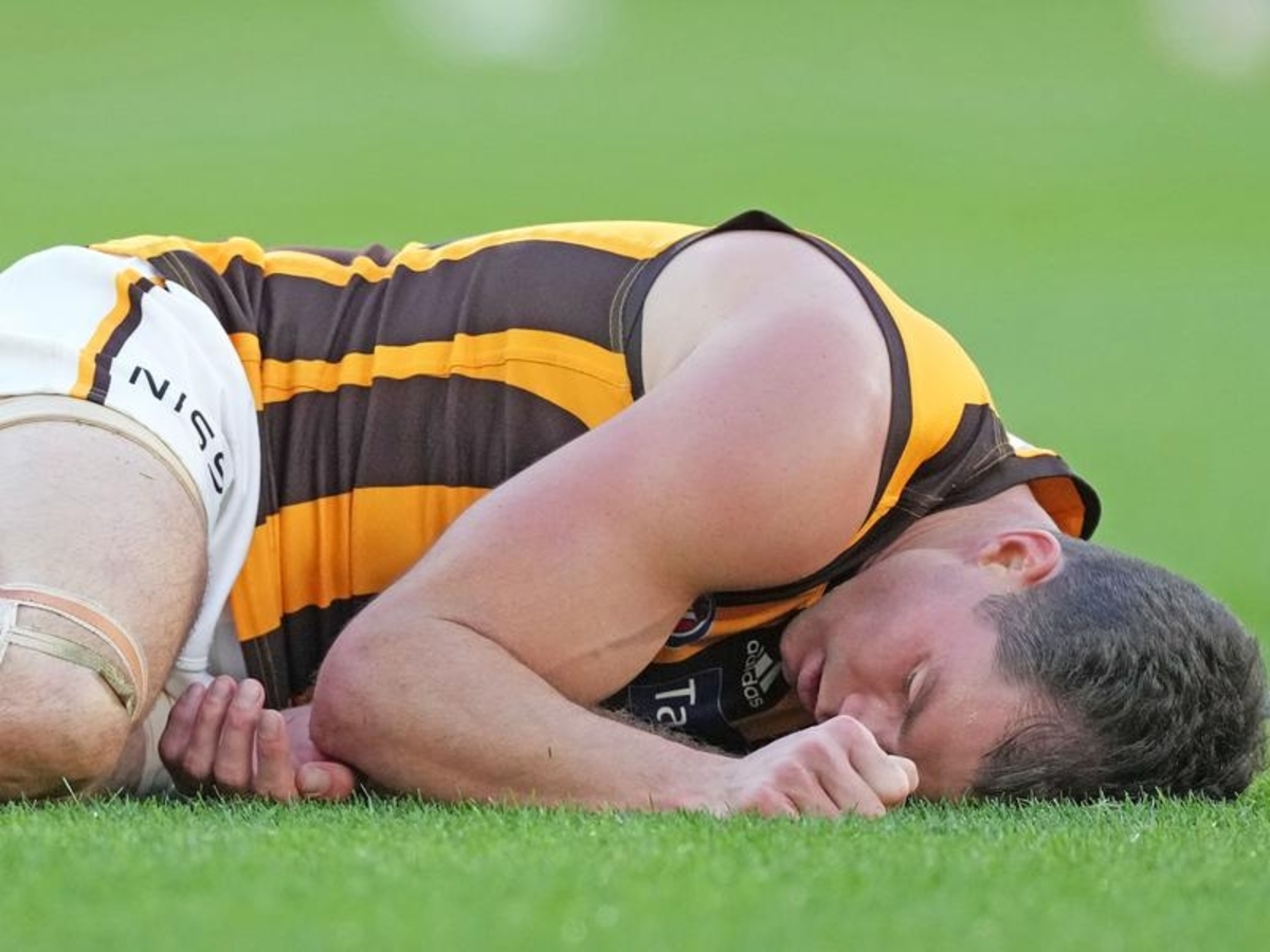 The Hawks vice-captain was assisted from the field and will miss this week's game against Gold Coast under concussion protocols.