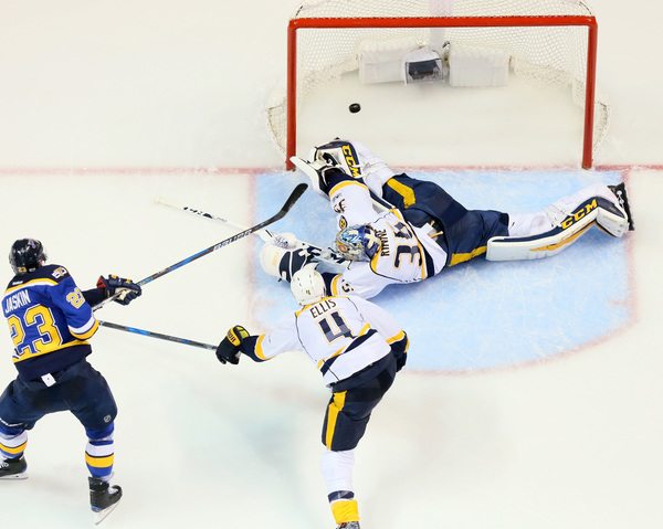 Once again, the Blues had another good start, but it never materialized into anything. They had a considerable amount of time in the offensive zone in the first period and outchanced Nashville, but couldn't put any of their nine shots past Rinne.