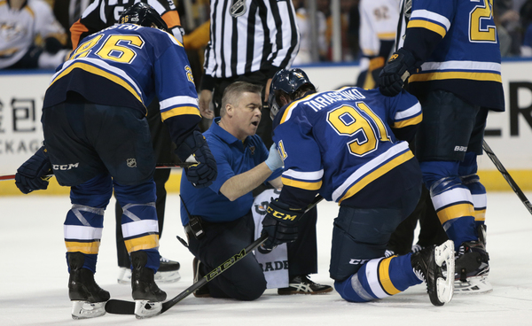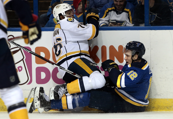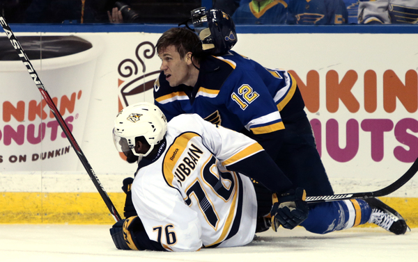 That's not possible, of course, but interestingly a sequence in which the Predators could have been called for tripping but weren't led to the Blues' first goal of the game.