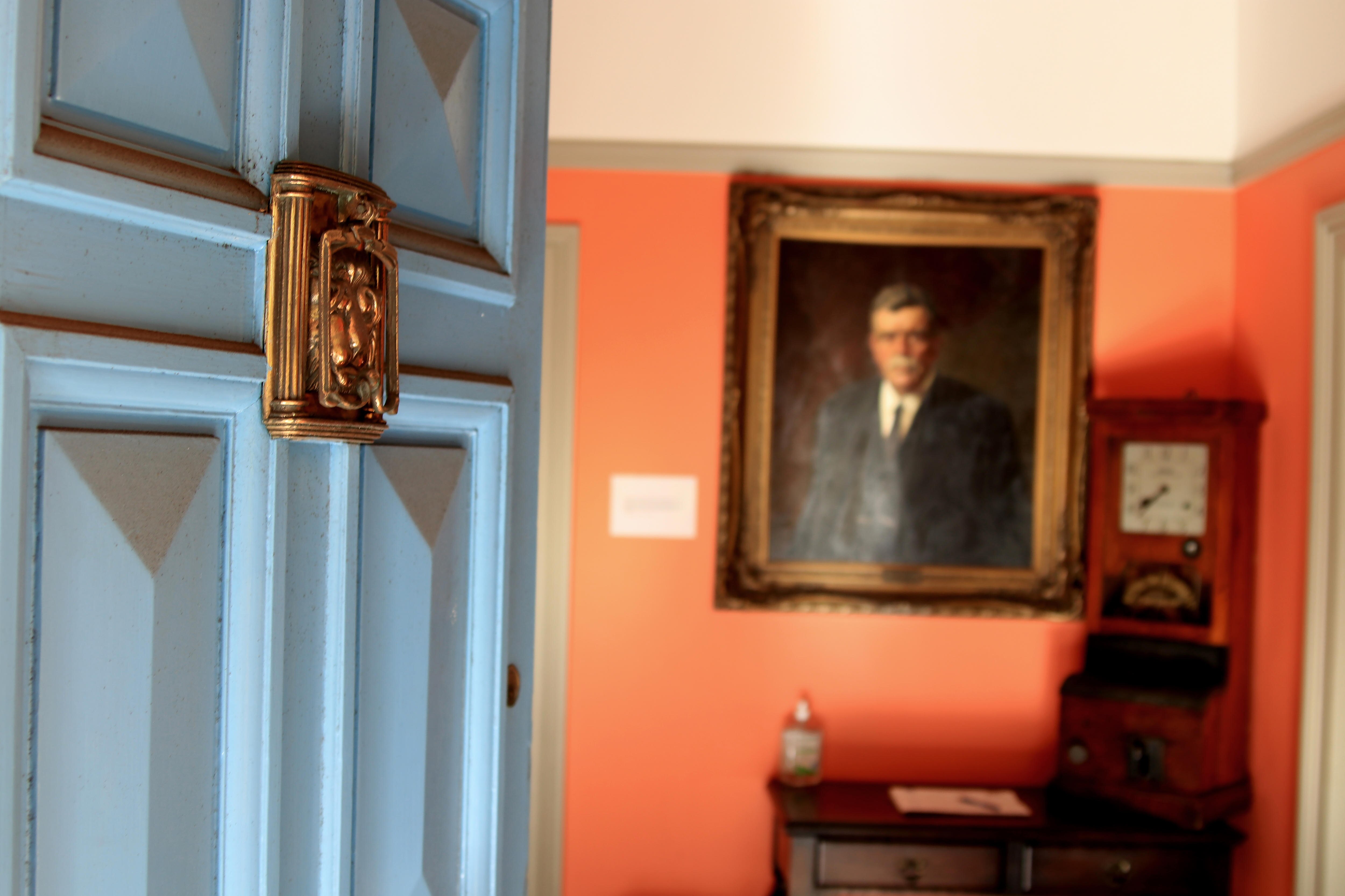 Signs above doorways inside the house describe what each room was used for, while historical photos and paintings of previous general managers and early steelmaking adorn the walls.