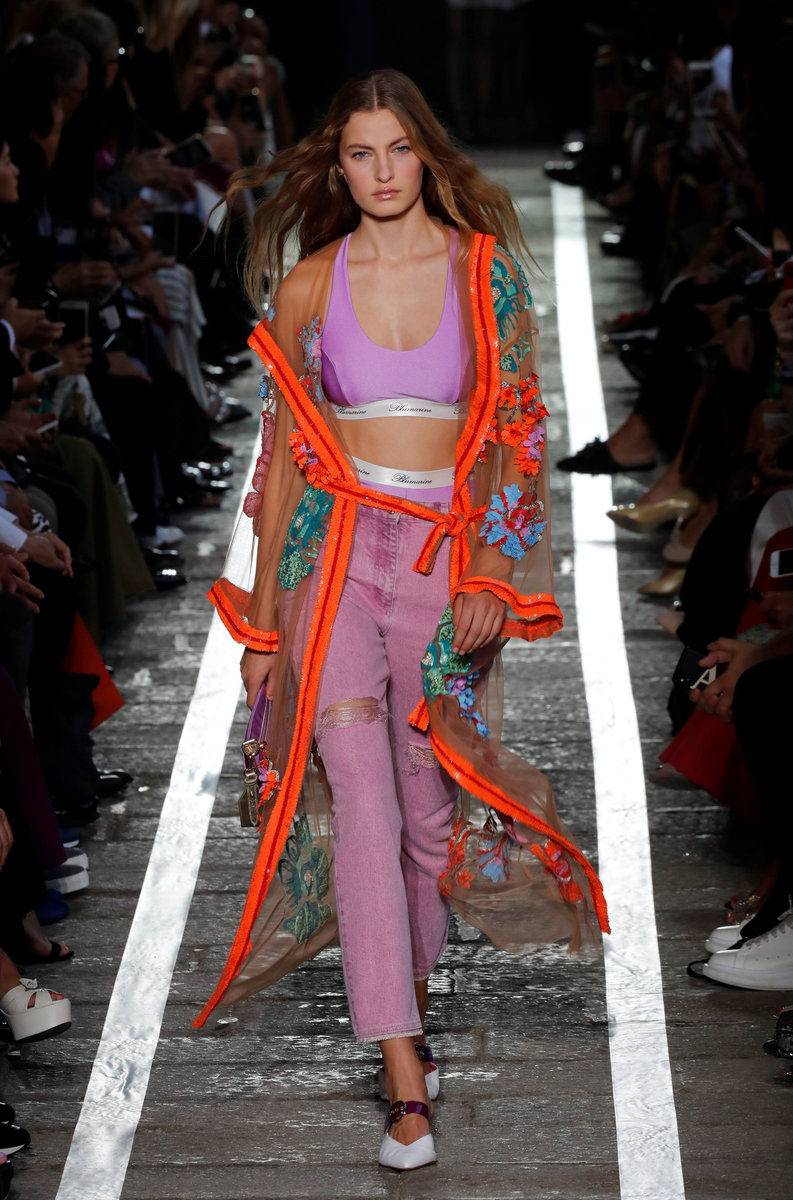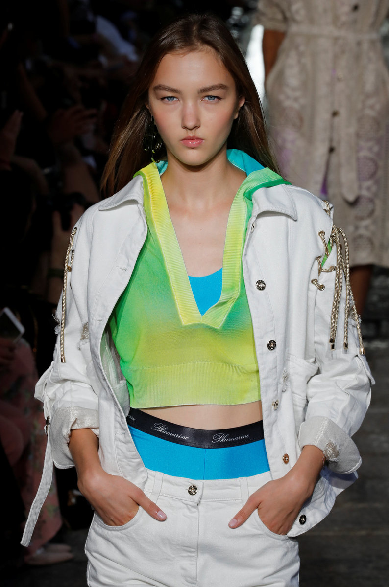 Like many other fashion brands, Blumarine, known for delicate and feminine designs, shifted to more casual and comfortable clothes and made use of plenty of snakeskin leather in the spring-summer 2019 collection.