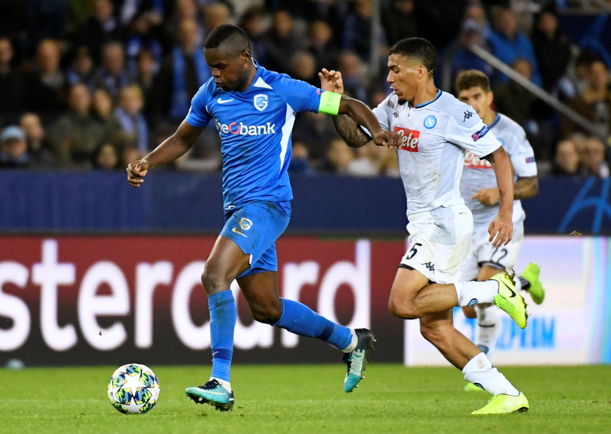 Soccer Football - Champions League - Group E - KRC Genk v Napoli - Luminus Arena, Genk, Belgium - October 2, 2019 KRC Genk's Mbwana Samatta in action with Napoli's Allan REUTERS/Piroschka van de Wouw