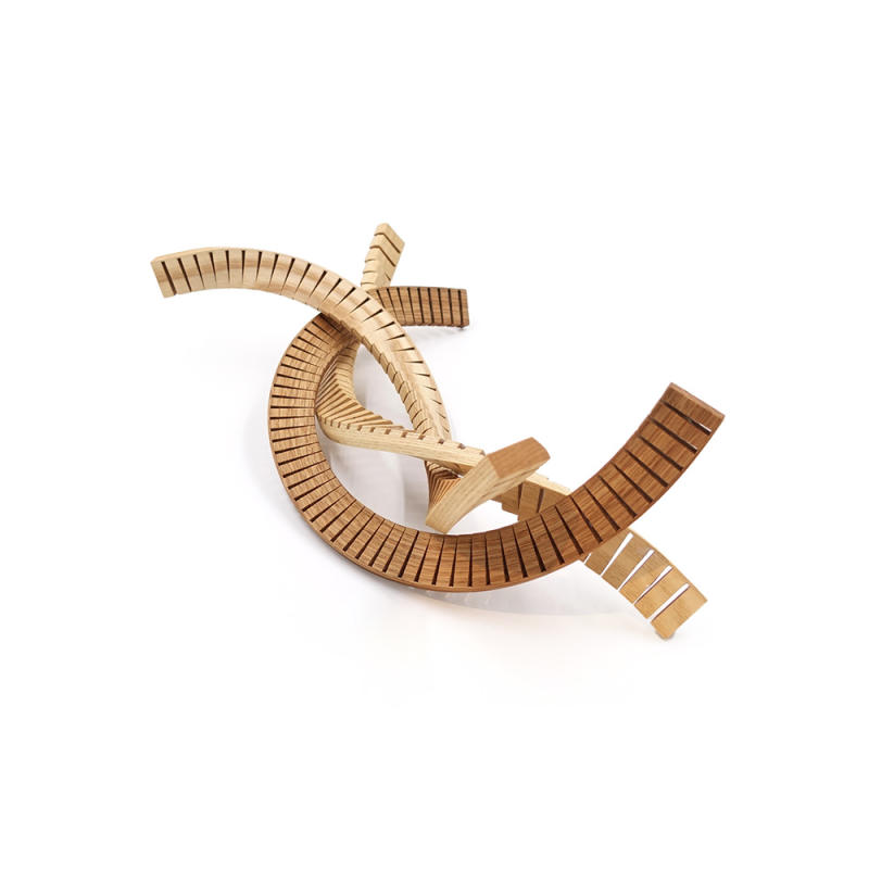 Seeking to expand the boundaries of woodworking in Thailand, both in terms of how it is perceived as well as the creative forms that can be realised in this medium, Nucharin Wangphongsawasd’s sculptural works range from multi-functional objets d’art, to lyrical and playful pieces that invite viewers to rethink the conventional sturdiness and solidity of wood and its utilitarian applications.
