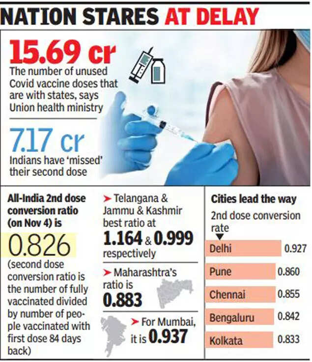 However, Pandey said a closer look at district-wise data showed that second shot conversion is better in urban centres. In Mumbai and Delhi, for instance, the ratio is 0.937and 0.927 respectively. "However, in Noida, which includes some rural pockets as well, the conversion is 0.694," he said.