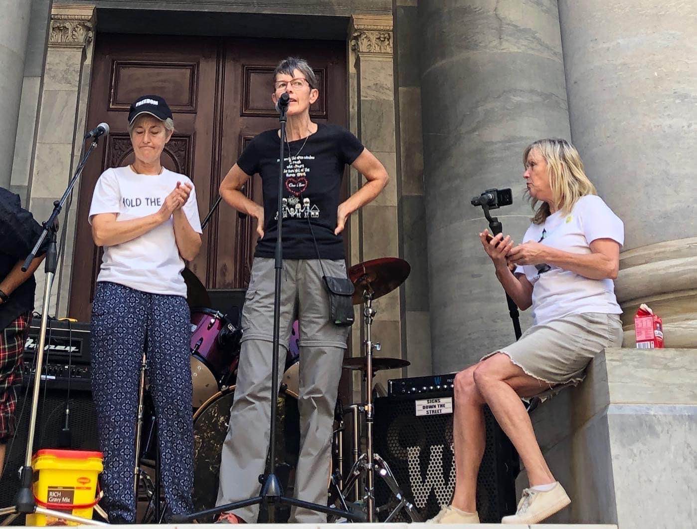 She told the crowd she had led a team distributing 225,000 flyers on the issue.
