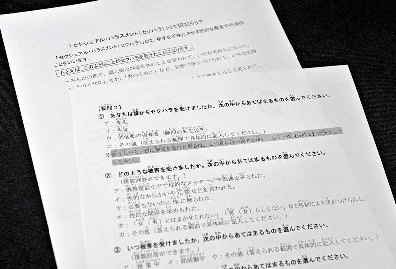 Of them, nine boards of education from Akita Prefecture, Chiba Prefecture, Kanagawa Prefecture, Shizuoka Prefecture, Aichi Prefecture, Osaka Prefecture, Kochi Prefecture, Chiba City and Sakai had conducted surveys asking students whether they had been victims of sexually indecent acts. Osaka and Shizuoka prefectures began conducting their surveys this school year.