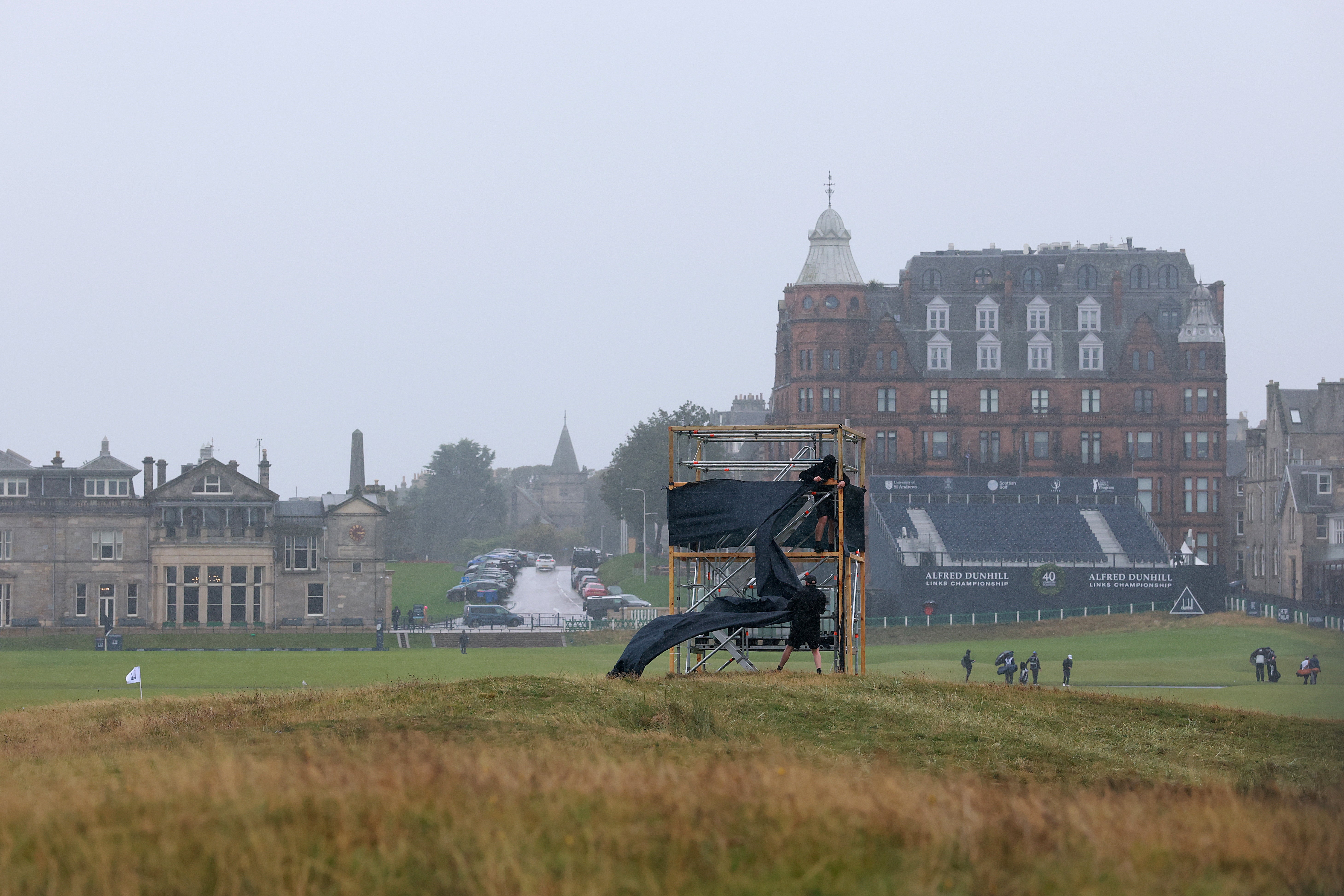 When early starter Richard Sterne posted a bogey-free 67 on the Old Course at St Andrews to set the target at 12 under par just as the weather worsened, he looked unlikely to be caught as strong winds and heavy rain battered all three host courses across the afternoon.