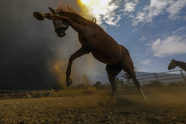The fire, which had been burning up in the San Gabriel Mountains, spread rapidly onto the desert floor Friday as winds arrived. Some residents had to flee as the fire jumped around, hitting some homes but sparing others.