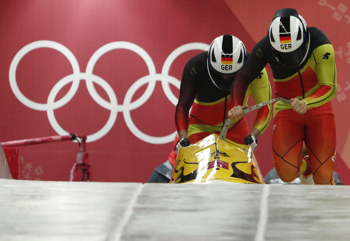 PYEONGCHANG, South Korea (Reuters) - German sleds dominated the opening heats of the men's two-man bobsleigh competition at the Pyeongchang Winter Olympics on Sunday, with pilot Nico Walther setting a confident gold-medal pace ahead of Canada's Justin Kripps.