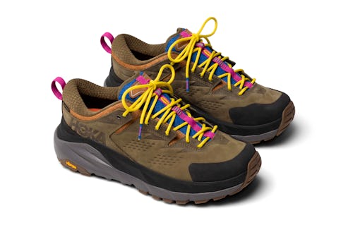 A special “Martini Olive” color dresses the Kaha Low and Ora Slide, helping to shroud both shoes in earth tones. GORE-TEX and a grippy Vibram outsole add to the durability of the beefy trail sneaker, while suede uppers imply a more streetwear feel — actually hiking in the Kaha Low risks damaging or staining the leather material. Hits of bright pink, blue, and yellow at the tongue and laces stand out against the otherwise neutral shoe.