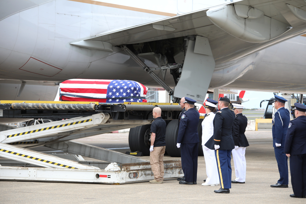 On Wednesday, senior U.S. embassy officials along with top Australian fire and emergency service officers stood at attention alongside relatives of the men as hearses slowly crossed the tarmac to the planes which would carry them home.