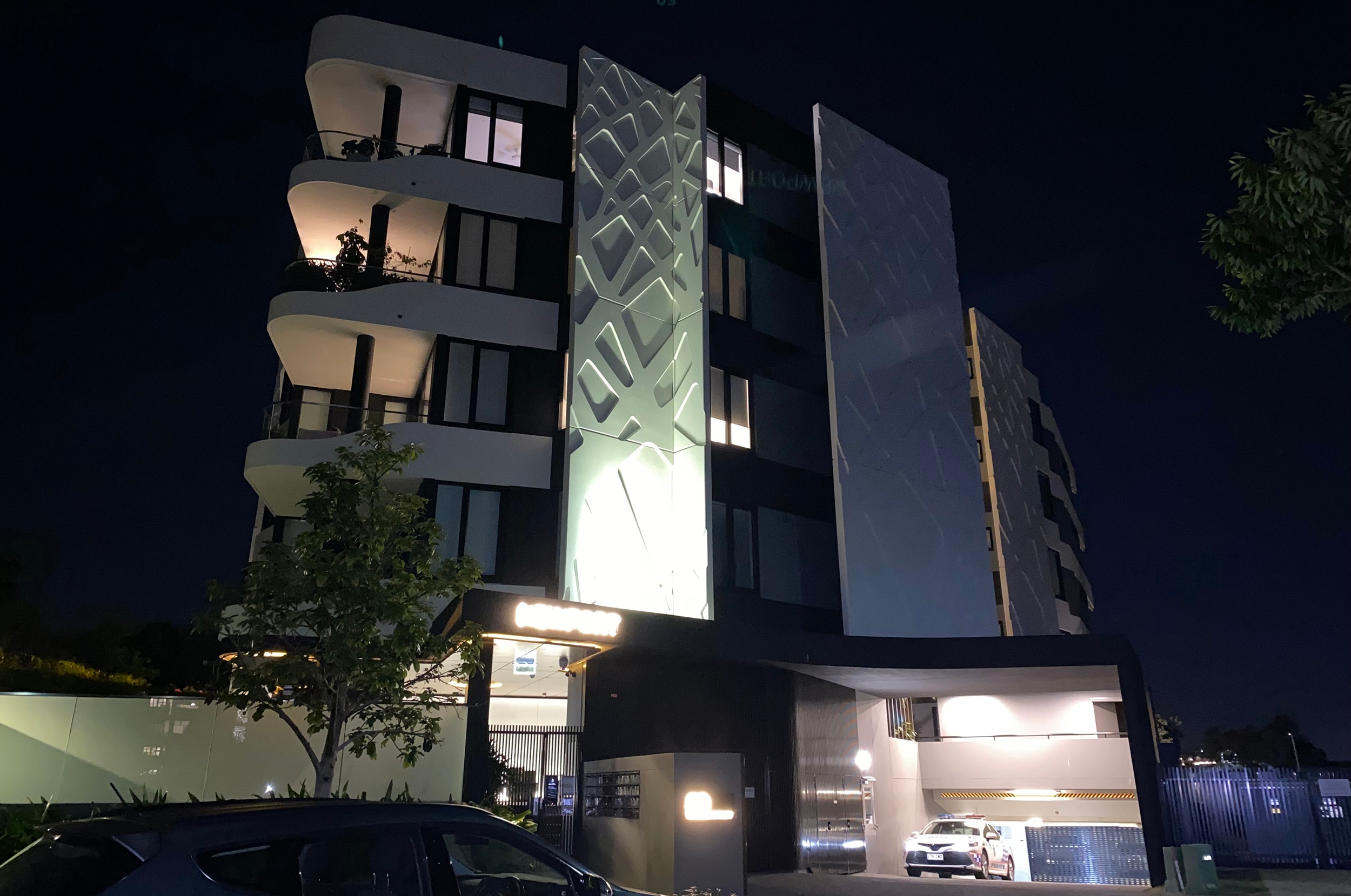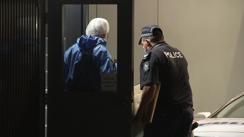 The body was discovered inside a storage box at the waterfront unit on level three of the Newport Hamilton Apartments block.