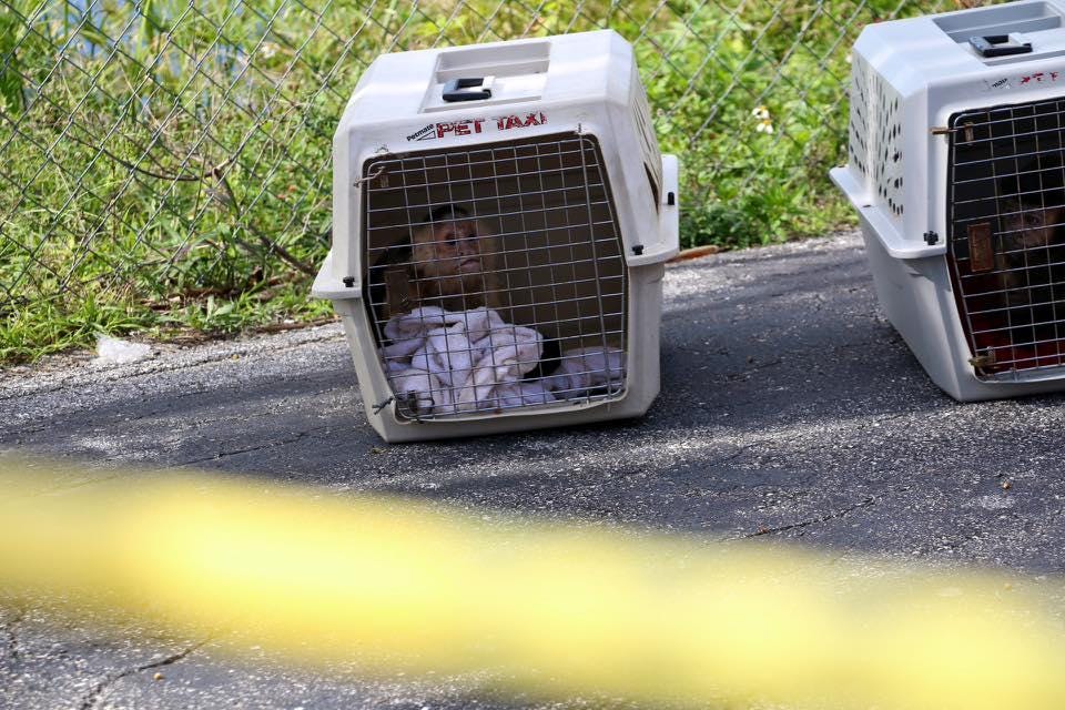 Two live monkeys were also found at the scene, and were being kept in cages.