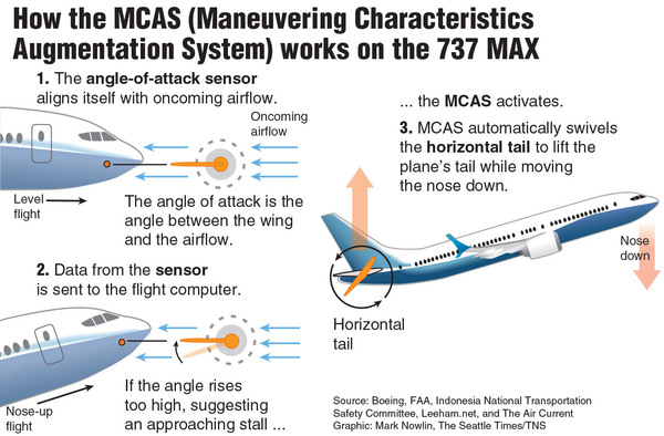 And Boeing has changed the Max's automated flight-control system's software to make it more robust. It will compare data signals — not only angle of attack but other data such as airspeed and altitude — from both flight-control computers at once, instead of the previous practice of using only one of the computers on each flight.