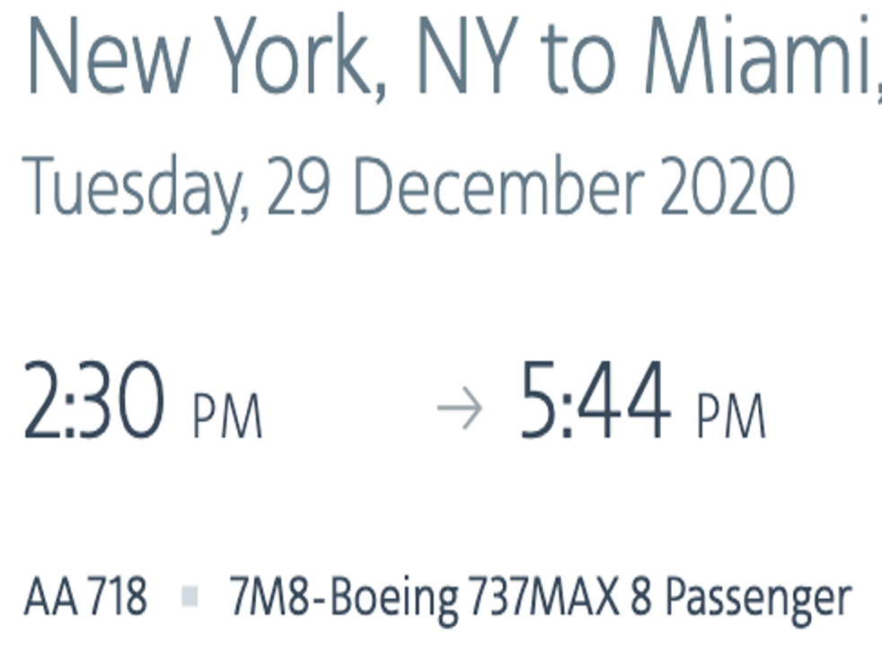 American Airlines is already selling flights on the Boeing 737 Max, on a single daily round-trip from Miami to New York’s La Guardia airport from 29 December. The carrier will be flying the aircraft ahead of that date, but without paying passengers.