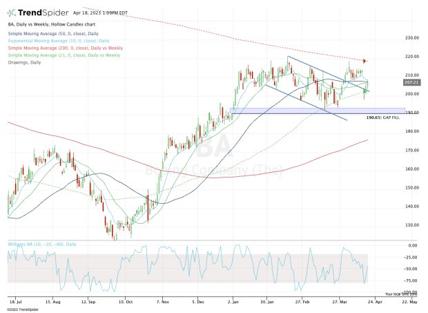 If the stock can push the upper end of resistance and break out over $220, then we’ll have a new range to start trading in Boeing stock. Until then, these are the levels we have to navigate.