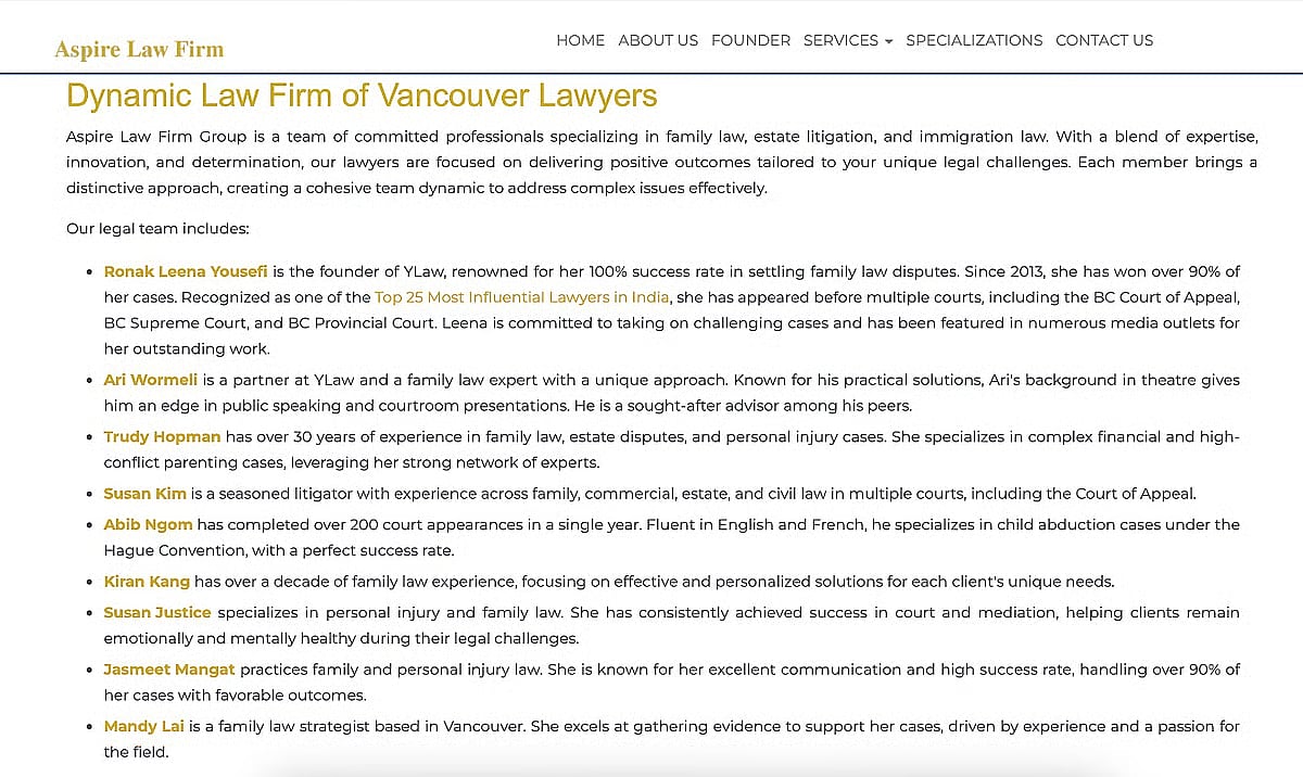 When contacted by TNM, Puneet Bhasin, whose professional information was stolen, confirmed that she had no knowledge of this website. She said she had no involvement with the so-called Aspire Law Firm, calling the use of her name and credentials “completely unauthorised.”