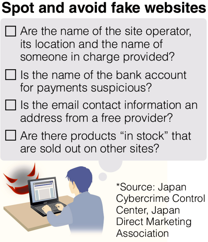 According to the Japan Cybercrime Control Center, an incorporated organization comprising police, security firms and other entities, scam sites could previously be identified from displays of extremely low prices, such as half the market value, and sloppy Japanese, among other features. Recently, however, such features are less present on fake sites, making it more difficult to detect them.