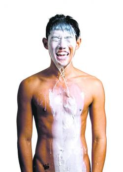 ''I instructed Derek to remain poised and serious throughout the shoot. Our first attempt was unsuccessful. In our second attempt, my business partner accidentally dumped the entire carton of milk in one go even though it was supposed to drizzle down slowly on his body. Everyone kept silent when suddenly Derek lost his composure and burst into laughter. This was the resulting shot."