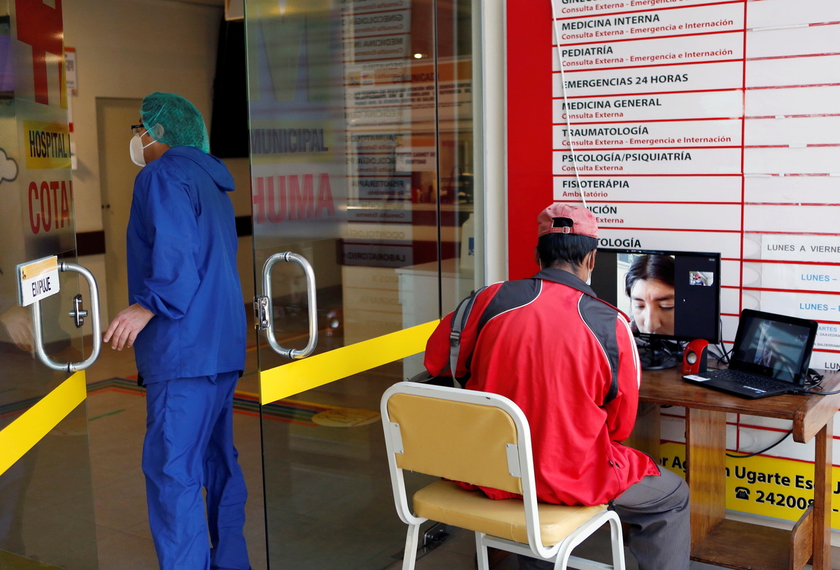 Not allowed to see them in person, and like many Bolivians not having enough internet bandwidth at home, Lagos is taking advantage of an innovative new idea: a video call booth at the hospital's entrance, which connects patients inside with their loved ones.