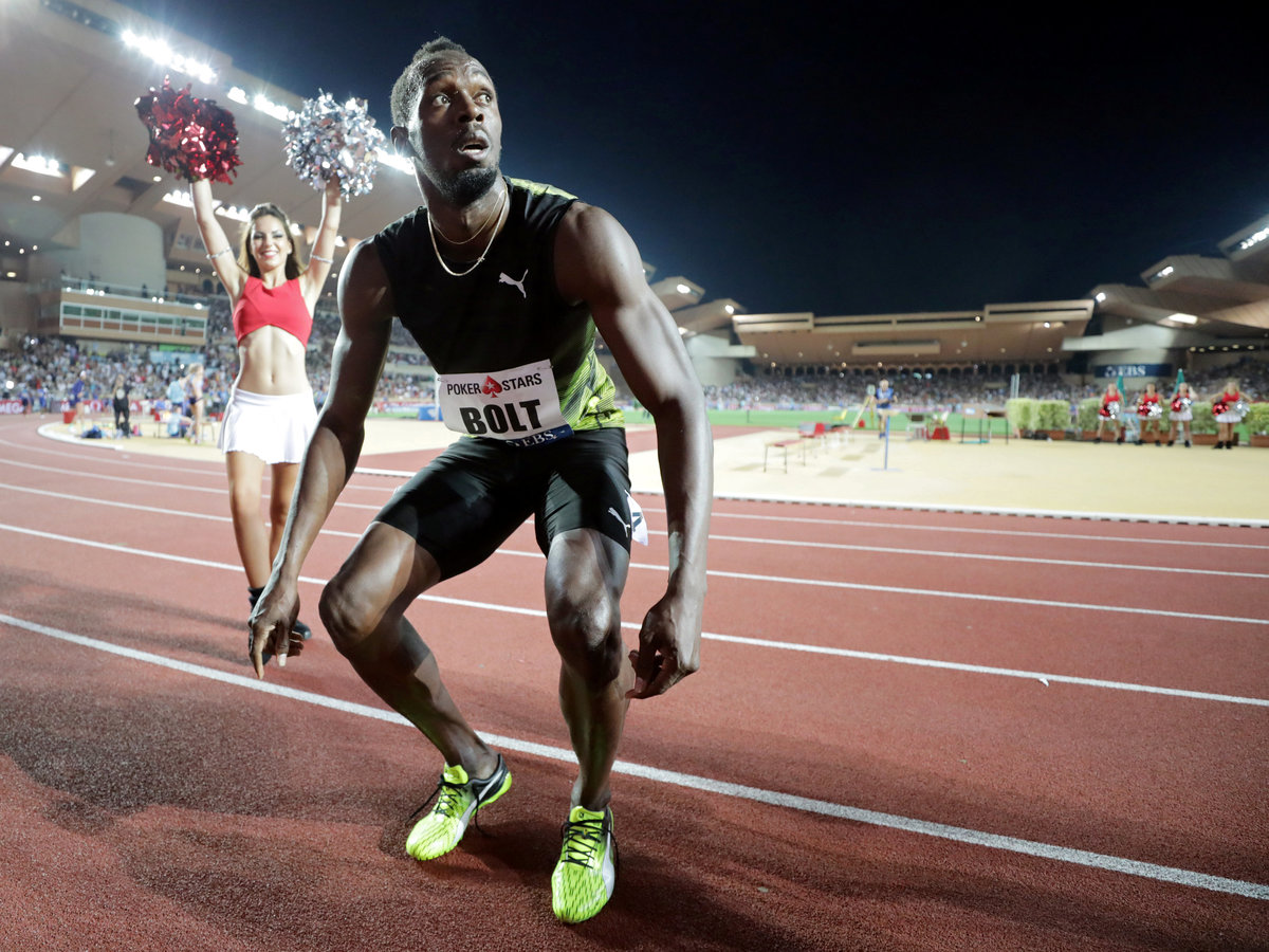Athletics - IAAF Diamond League Herculis meeting - 100m Men - Louis II Stadium, Monaco - July 21, 2017. Jamaican sprinter Usain Bolt dances at the end of the meeting. REUTERS/Eric GaillardAthletics - IAAF Diamond League Herculis meeting - 100m Men - Louis II Stadium, Monaco - July 21, 2017. Jamaican sprinter Usain Bolt dances at the end of the meeting. REUTERS/Eric GaillardAthletics - IAAF Diamond League Herculis meeting - 100m Men - Louis II Stadium, Monaco - July 21, 2017. Jamaican sprinter Usain Bolt reacts after winning. REUTERS/Eric GaillardAthletics - IAAF Diamond League Herculis meeting - 100m Men - Louis II Stadium, Monaco - July 21, 2017. Jamaican sprinter Usain Bolt in action. REUTERS/Eric GaillardAthletics - IAAF Diamond League Herculis meeting - 100m Men - Louis II Stadium, Monaco - July 21, 2017. Jamaican sprinter Usain Bolt reacts after winning. REUTERS/Eric GaillardAthletics - IAAF Diamond League Herculis meeting - 100m Men - Louis II Stadium, Monaco - July 21, 2017. Jamaican sprinter Usain Bolt (R) in action. REUTERS/Eric GaillardAthletics - IAAF Diamond League Herculis meeting - 100m Men - Louis II Stadium, Monaco - July 21, 2017. Jamaican sprinter Usain Bolt in action. REUTERS/Eric Gaillard