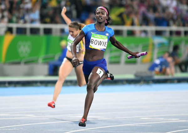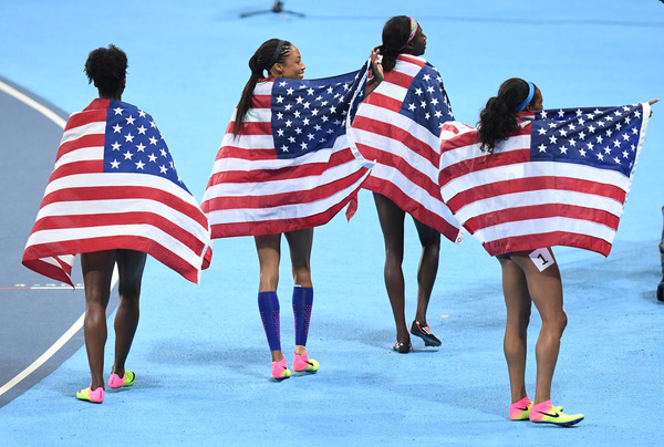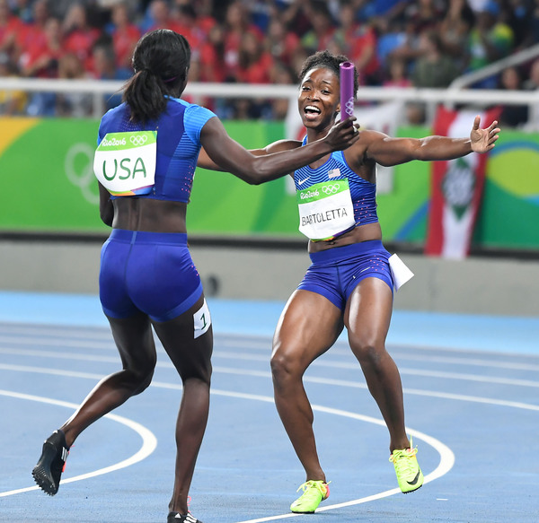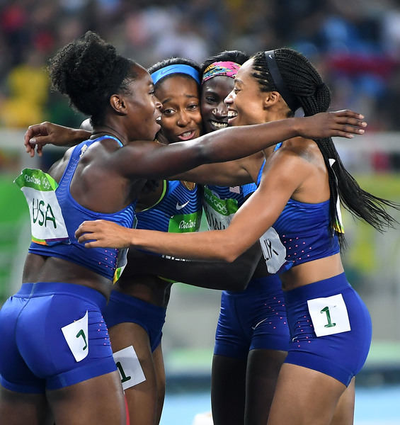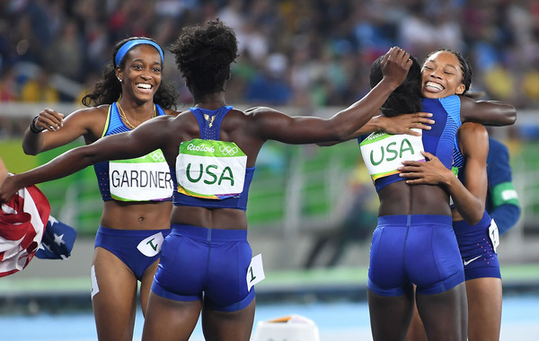 Just before the men's race, the U.S. women's 400-meter relay team of Tianna Bartoletta, Allyson Felix, English Gardner and Tori Bowie won gold with a time of 41.01 seconds. That was the eighth medal of Felix's stellar career, a total comprised of five gold _ the most for any female track athlete _ and three silver.