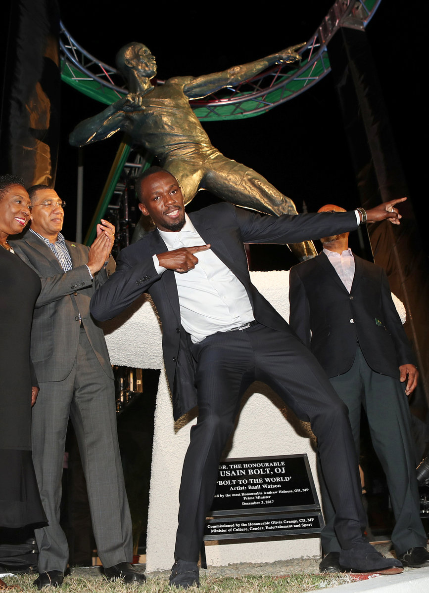 The statue, commissioned by the Jamaican government and revealed by Prime Minister Andrew Holness, stands in front of the place where 15 years ago Bolt won the junior championships to announce himself to the world.