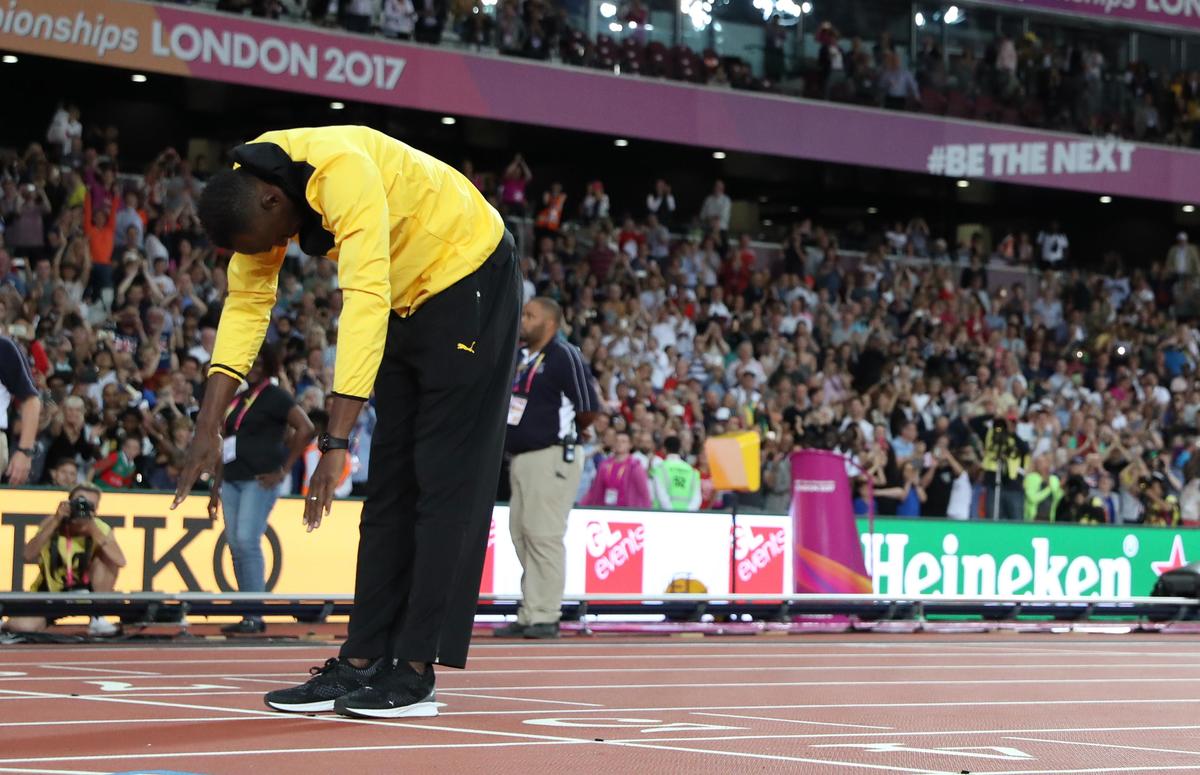 Twenty four hours earlier, the 30-year-old Jamaican's matchless sprint career had ended painfully on the last leg of the 4 x 100 metres relay final as he crumpled to the ground in the London Stadium with a hamstring injury.