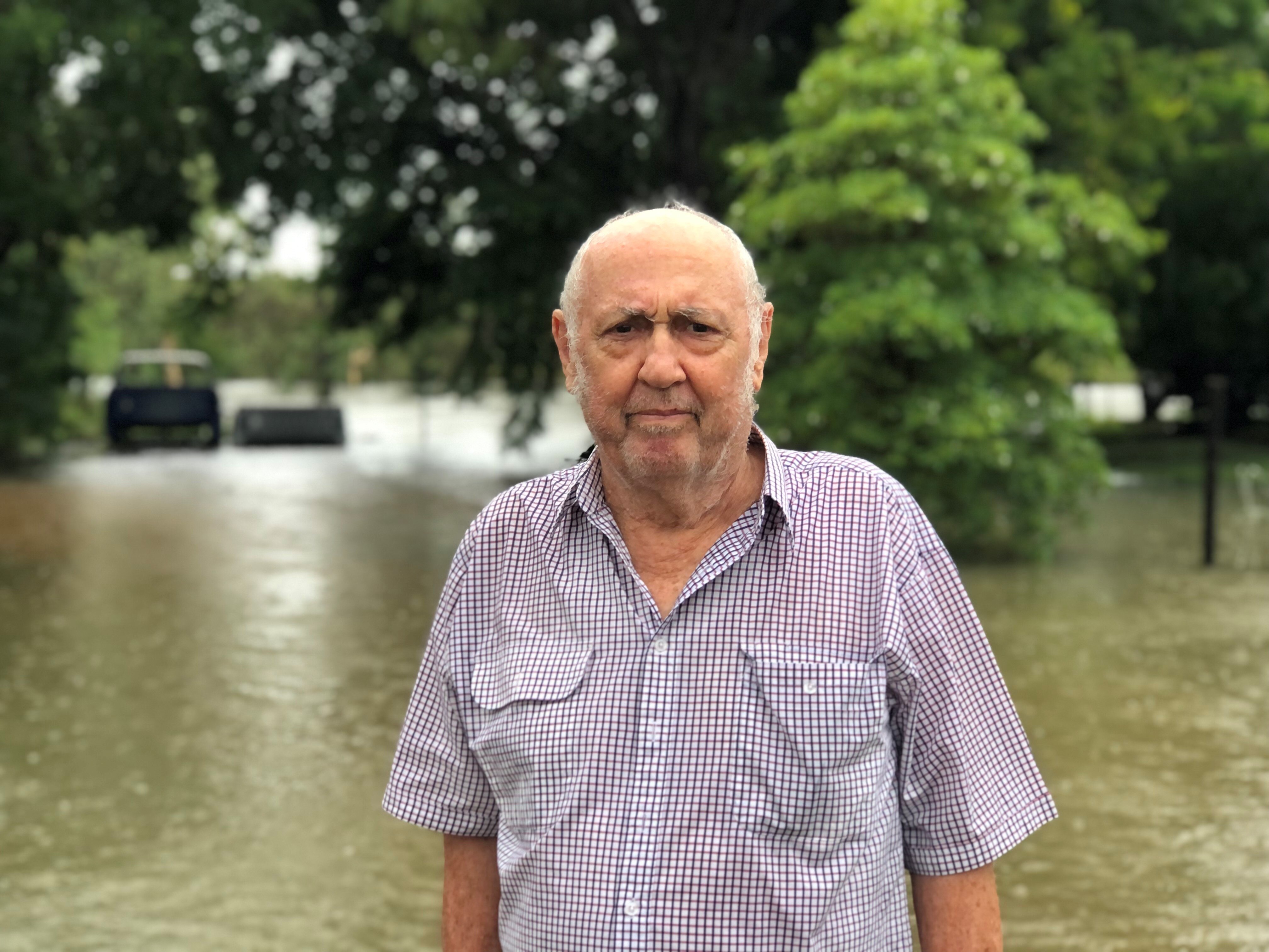 Earl Tutt has been nervously watching the floodwaters creep towards his home in Deeragun.