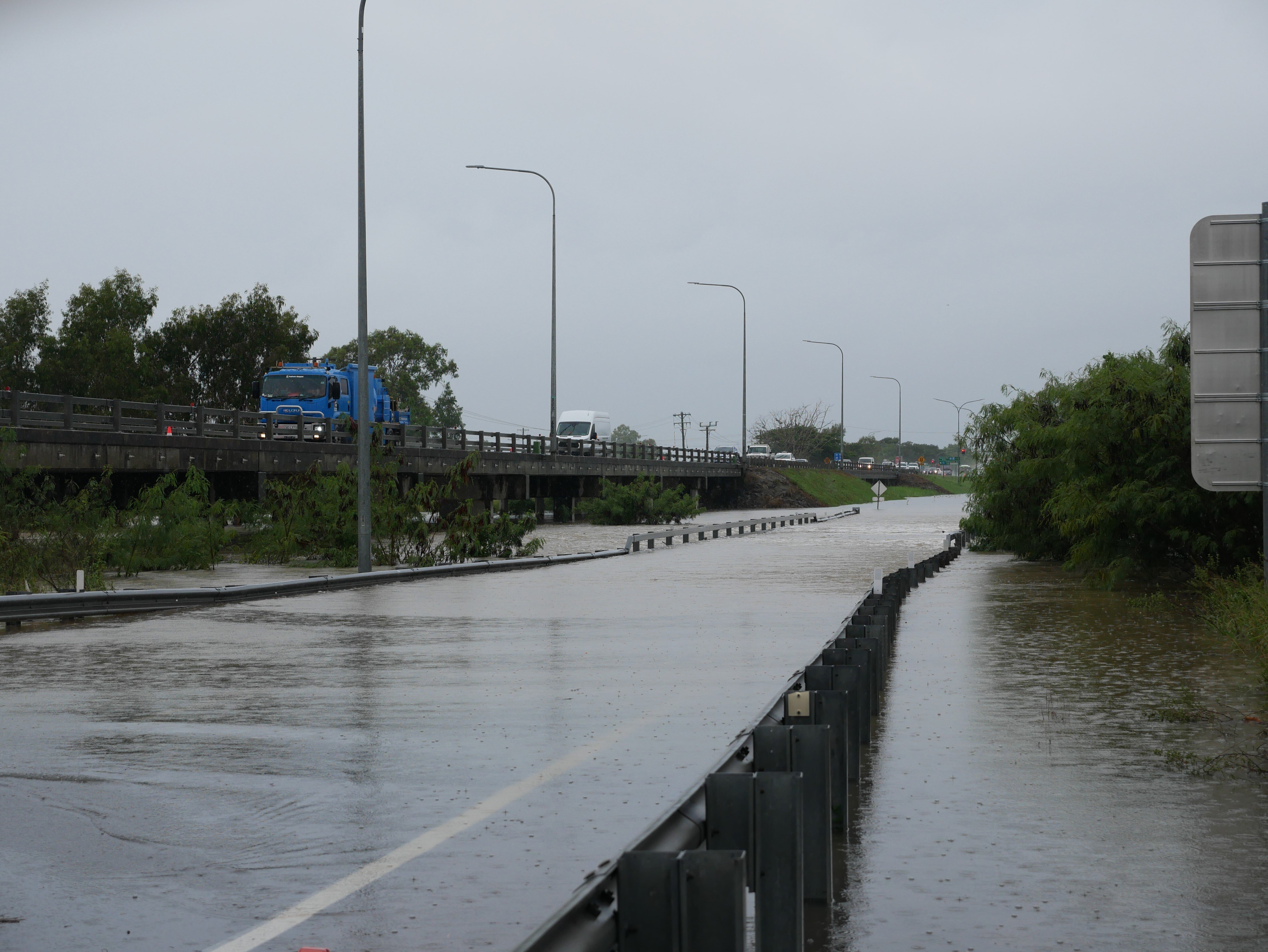 Townsville motorists were delayed by road closures, with all lanes of the lower Bohle Bridge covered by water.