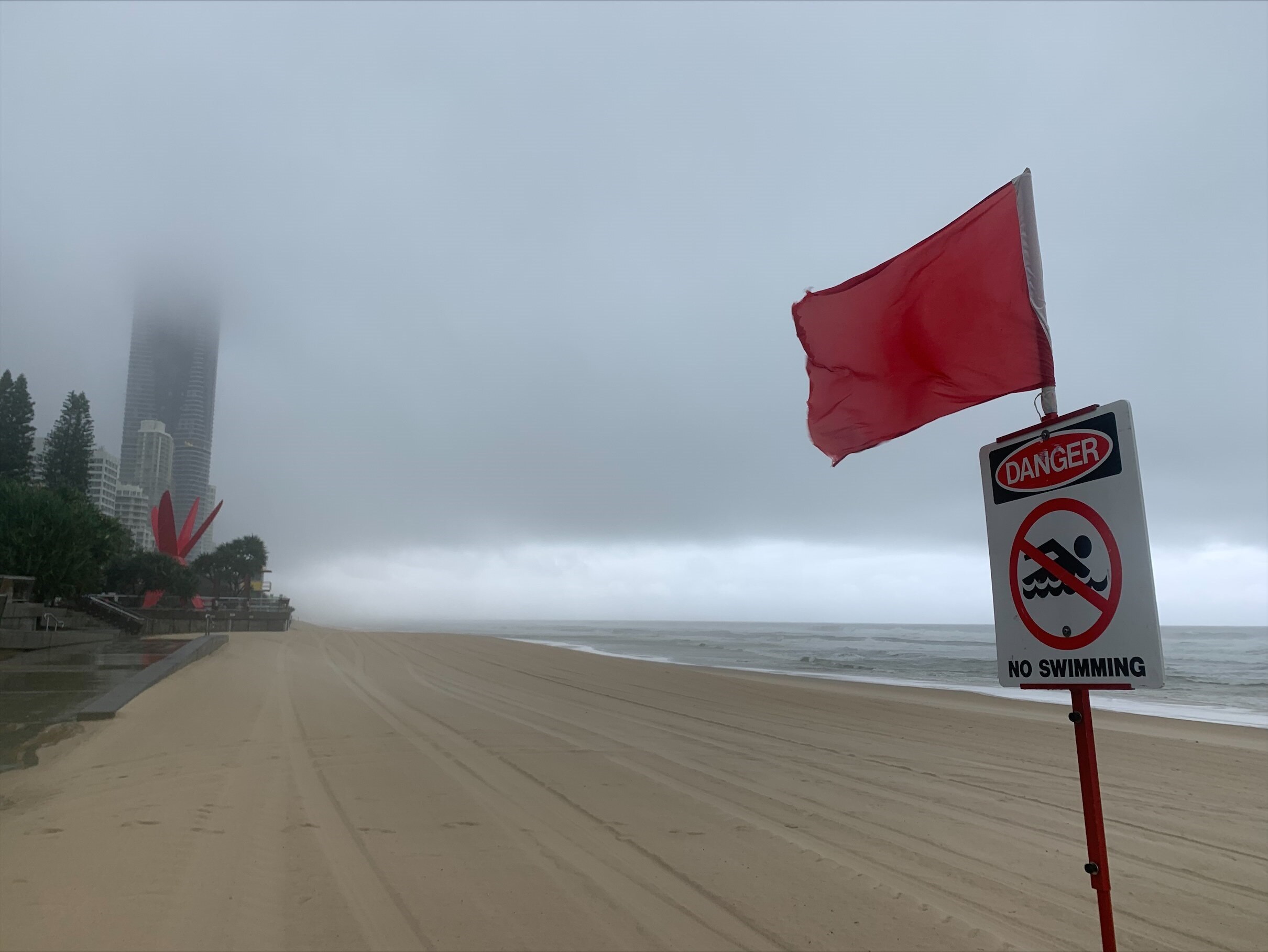 All Gold Coast and Sunshine Coast beaches were closed on Sunday due to dangerous weather and surf conditions.