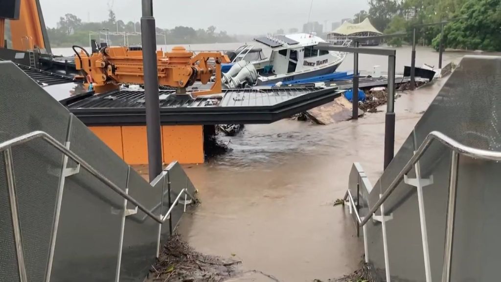 The rising Brisbane River caused some boats to slip their anchors.