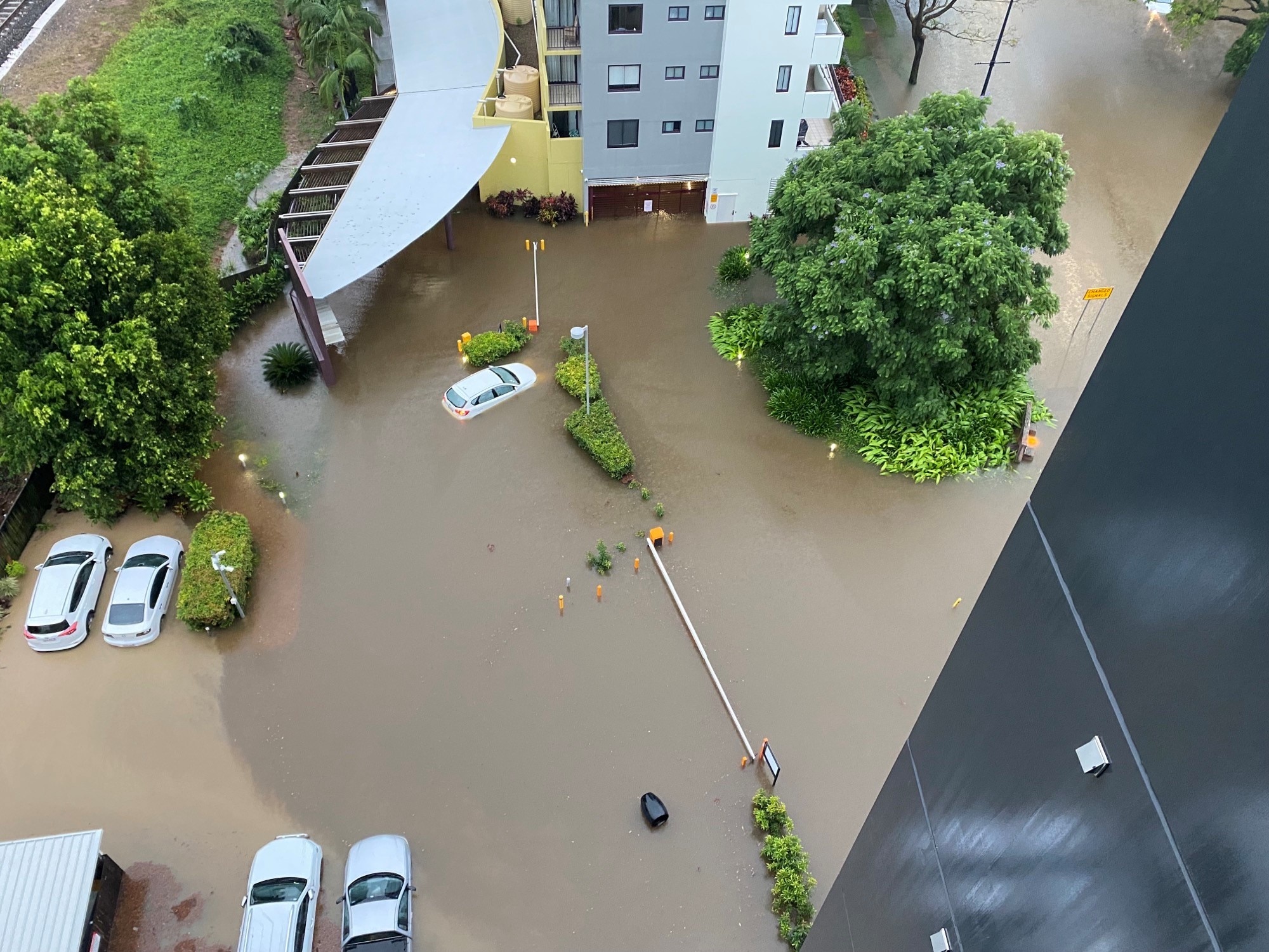 In Brisbane's riverside suburb of Toowong, homes and businesses were on Sunday inundated with tides of brown water touching the roofs of buildings and the tops of traffic lights.