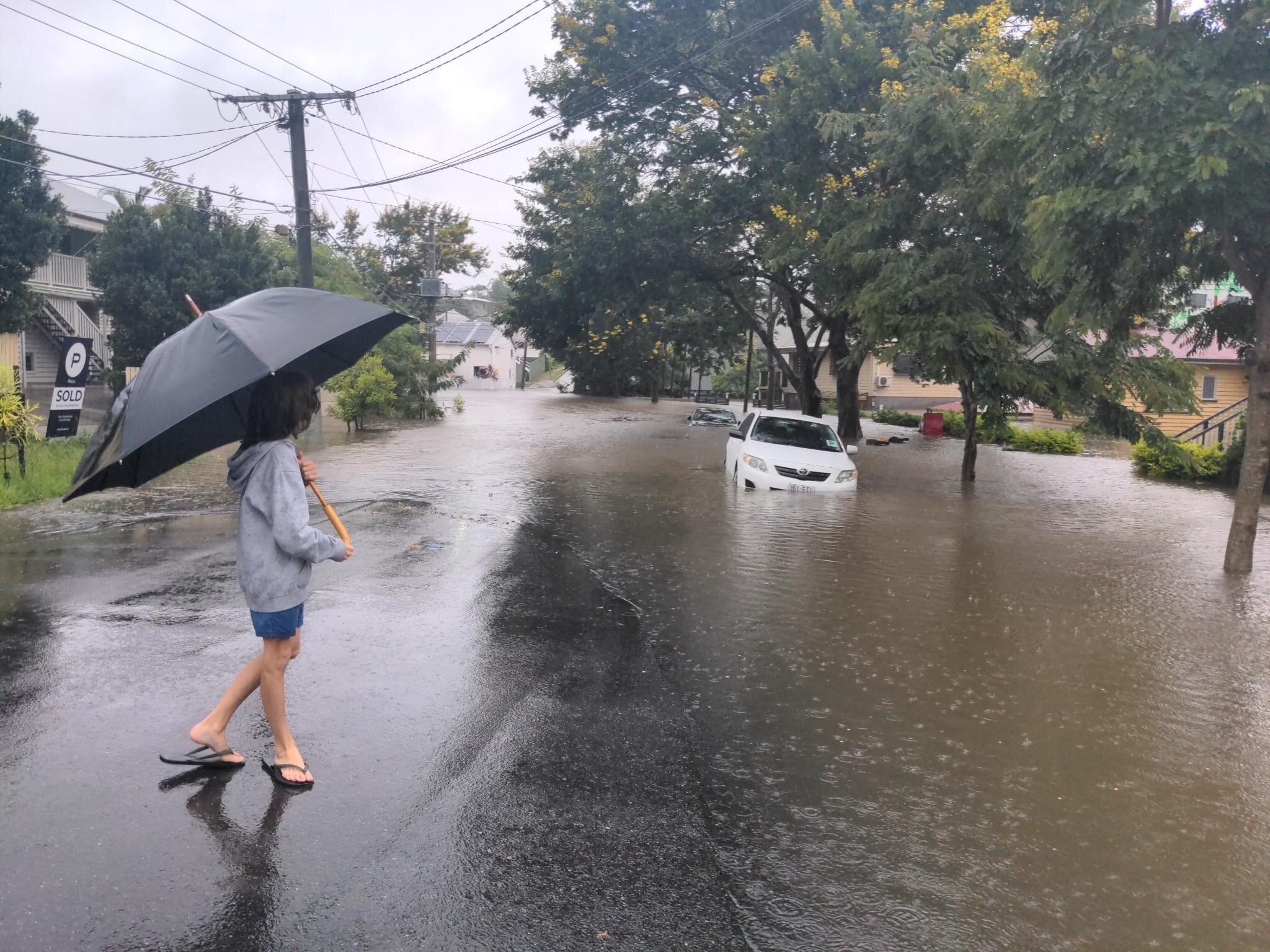 In the latest incident, a 34-year-old Moorooka man died after his car was submerged in floodwaters in Indooroopilly at about 2:30am.
