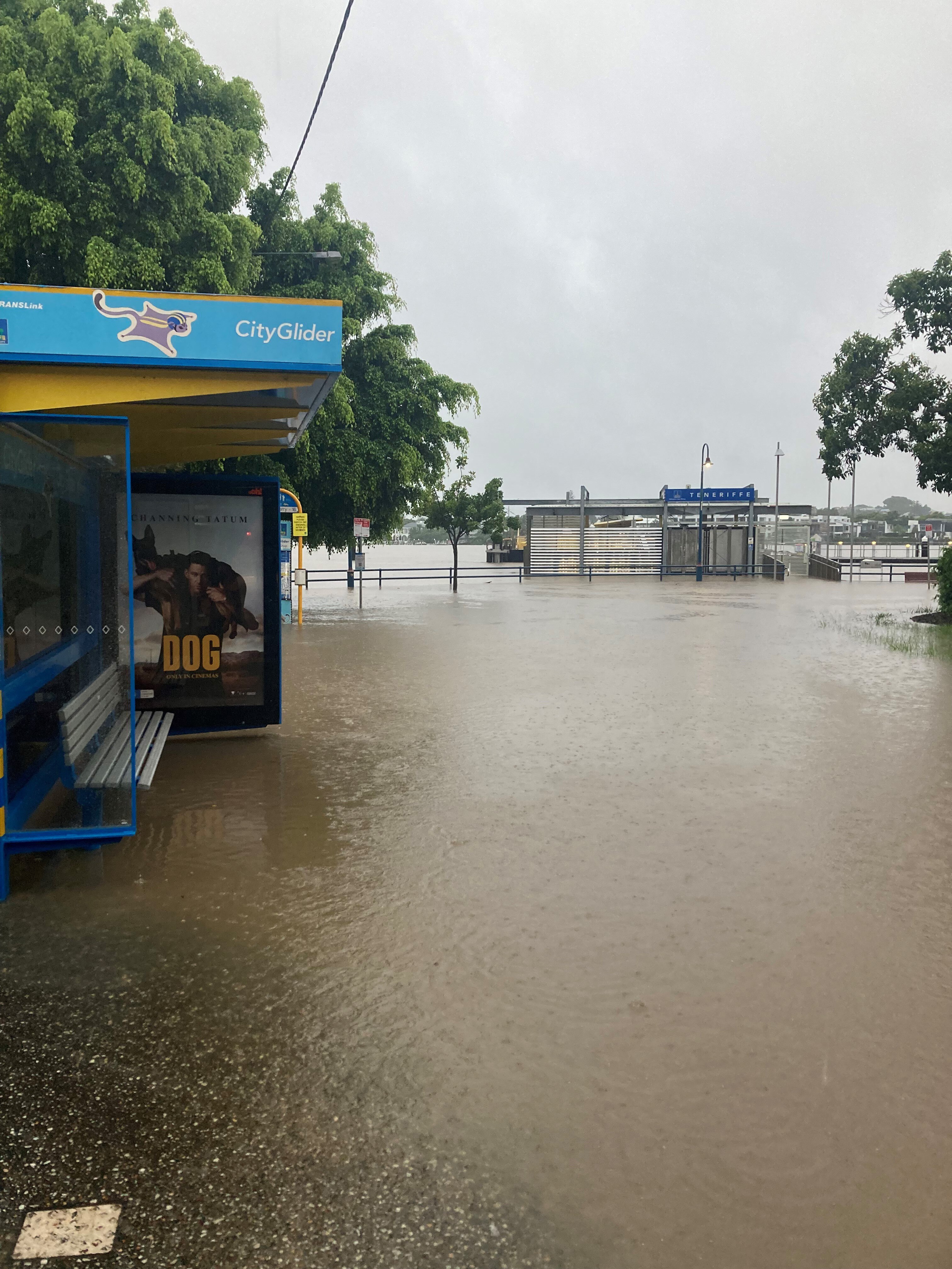 There is a major flood warning for the Brisbane River in Brisbane, with the weather bureau warning further high-tide peaks will come tonight and tomorrow morning.