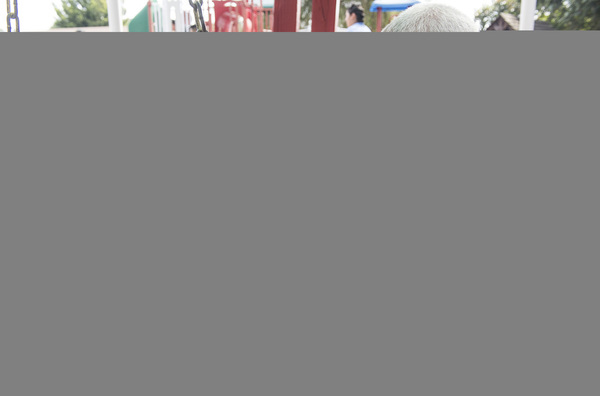 Minutes before the hunt, members of the bomb squad hid 60 eggs throughout the playground, tucking them inside the jungle gym, tire swing and other spots.