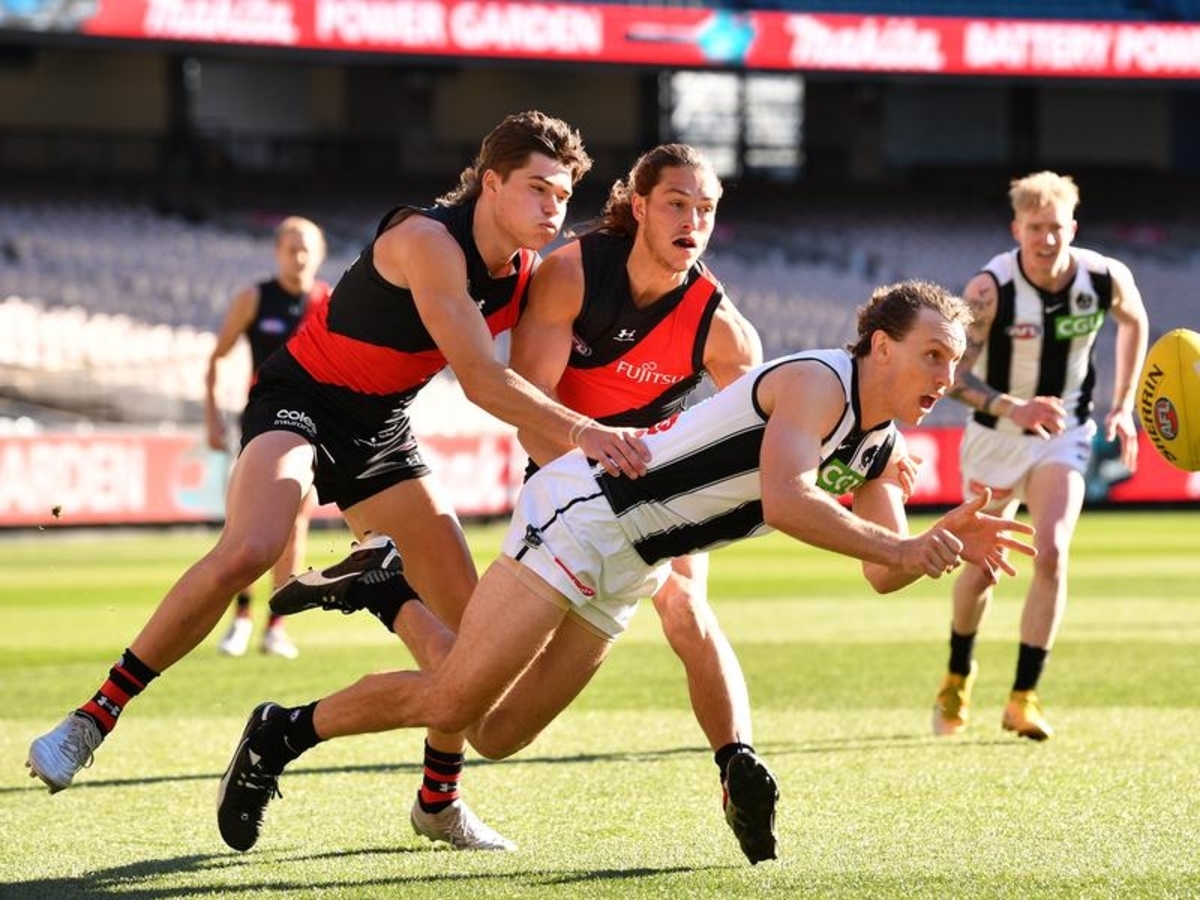 Taylor Adams (31 disposals, 10 clearances) and Jamie Elliott (four goals) led the way for Collingwood while youngster Jay Rantall put the clamps on Essendon sensation Darcy Parish.