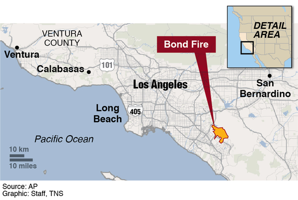 The Bond fire nearly quadrupled in size in just a few hours, exploding to about 7,200 acres by Thursday afternoon. About 25,000 residents live in a mandatory evacuation order in effect for Silverado Canyon, Modjeska Canyon, Williams Canyon, Black Star and Baker canyons and portions of Portola Hills and Foothill Ranch, the Orange County Sheriff's Department said.