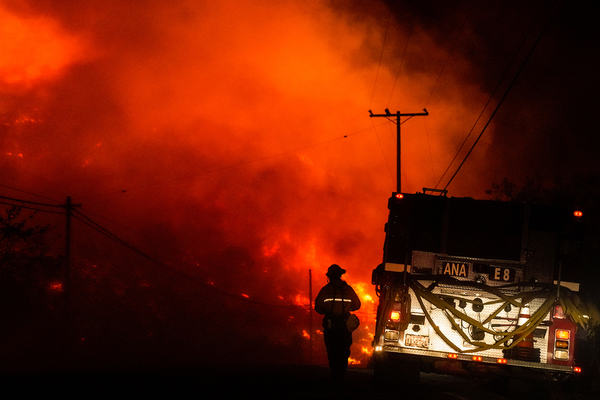 Firefighters battle the Bond Fire, started by a structure fire that extended into nearby vegetation, along Silverado Canyon Road on Thursday, Dec. 3, 2020 in Silverado, CA. Dangerous fire weather conditions are in effect across wide swaths of Southern California as dry, gusty Santa Ana winds are expected from the northeast. (Kent Nishimura/Los Angeles Times/TNS)A helicopter makes a water drop on a Santa Ana wind-driven Bond fire that started early this morning and currently burning Irvine Lake on Thursday, Dec. 3, 2020 in Silverado Canyon, CA.(Allen J. Schaben/Los Angeles Times/TNS)Firefighters battle the Bond Fire, started by a structure fire that extended into nearby vegetation, along Silverado Canyon Road on Thursday, Dec. 3, 2020 in Silverado, CA. Dangerous fire weather conditions are in effect across wide swaths of Southern California as dry, gusty Santa Ana winds are expected from the northeast. (Kent Nishimura/Los Angeles Times/TNS)The Bond Fire, started by a structure fire that extended into nearby vegetation on Thursday, Dec. 3, 2020 in Silverado, CA. Dangerous fire weather conditions are in effect across wide swaths of Southern California as dry, gusty Santa Ana winds are expected from the northeast. (Kent Nishimura/Los Angeles Times/TNS)A large plume rises from behind rugged terrain in along Santiago Canyon Road on Dec. 3, 2020 in Silverado Canyon, Calif., where the Bond fire continues to burn with 0% containment. (Allen J. Schaben/Los Angeles Times/TNS)The Bond Fire, started by a structure fire that extended into nearby vegetation on Thursday, Dec. 3, 2020 in Silverado, CA. Dangerous fire weather conditions are in effect across wide swaths of Southern California as dry, gusty Santa Ana winds are expected from the northeast. (Kent Nishimura/Los Angeles Times/TNS)