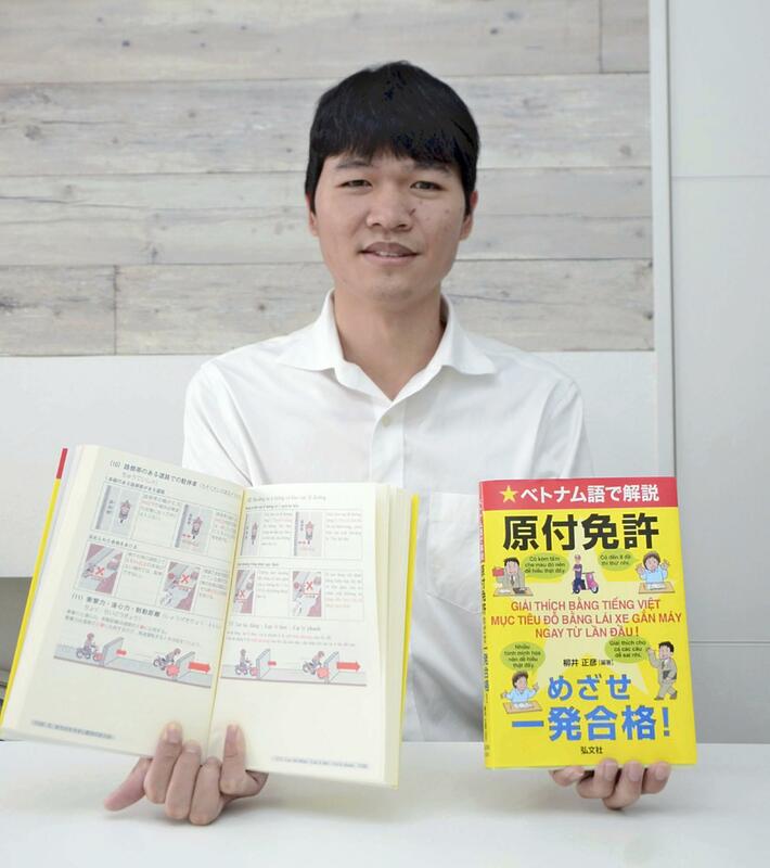 Vietnamese became one of the languages in which people seeking a moped license in Osaka Prefecture can take the test last October. The exam environment has improved, but Hai said: "There are many differences in the rules between Vietnam and Japan, such as driving on the right side of the road. People need to study sufficiently. I think this book will help a lot of people."
