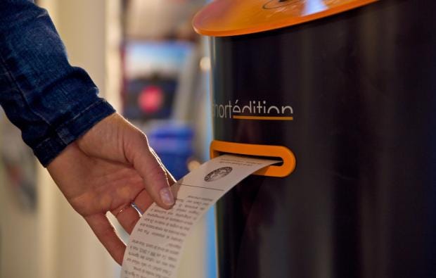Leave it to the French, with their love of Voltaire and Simone de Beauvoir, to revive literature in the era of hot takes, fast news and smartphone addiction. Short Edition, a French community publisher of short-form literature, has installed more than 30 story dispensers in the United States in the past year to deliver fiction at the push of a button at restaurants and universities, government offices and transportation hubs.