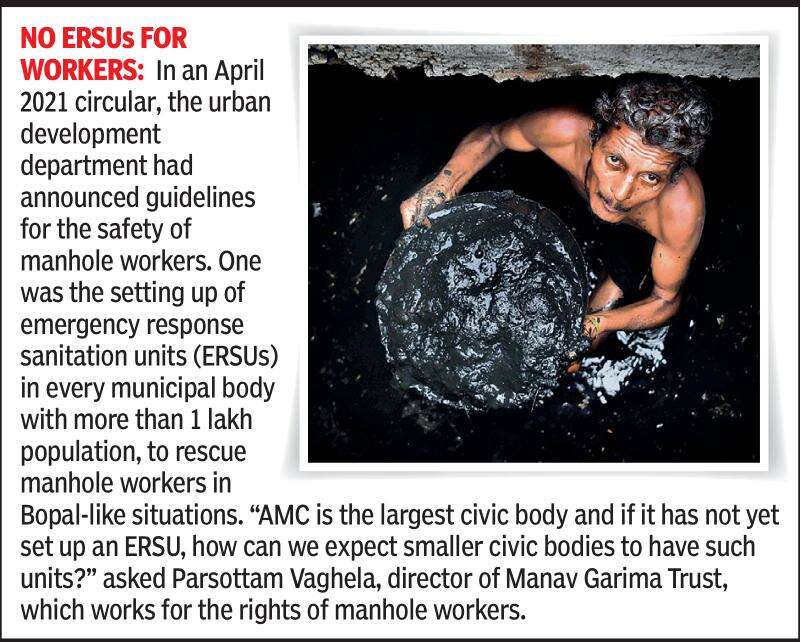 “All laws protecting the rights of manhole workers are in place including the Prohibition of Employment as Manual Scavengers and Their Rehabilitation Act 2013, 2014 order, Gujarat HC directions and Gujarat government affidavits. Implementation of these laws should be the state’s priority,” said High Court advocate Hirak Ganguly, who represented petitioner Parsottam Vaghela in his writ petition in 2016 seeking proper implementation of SC’s landmark order on manhole workers.